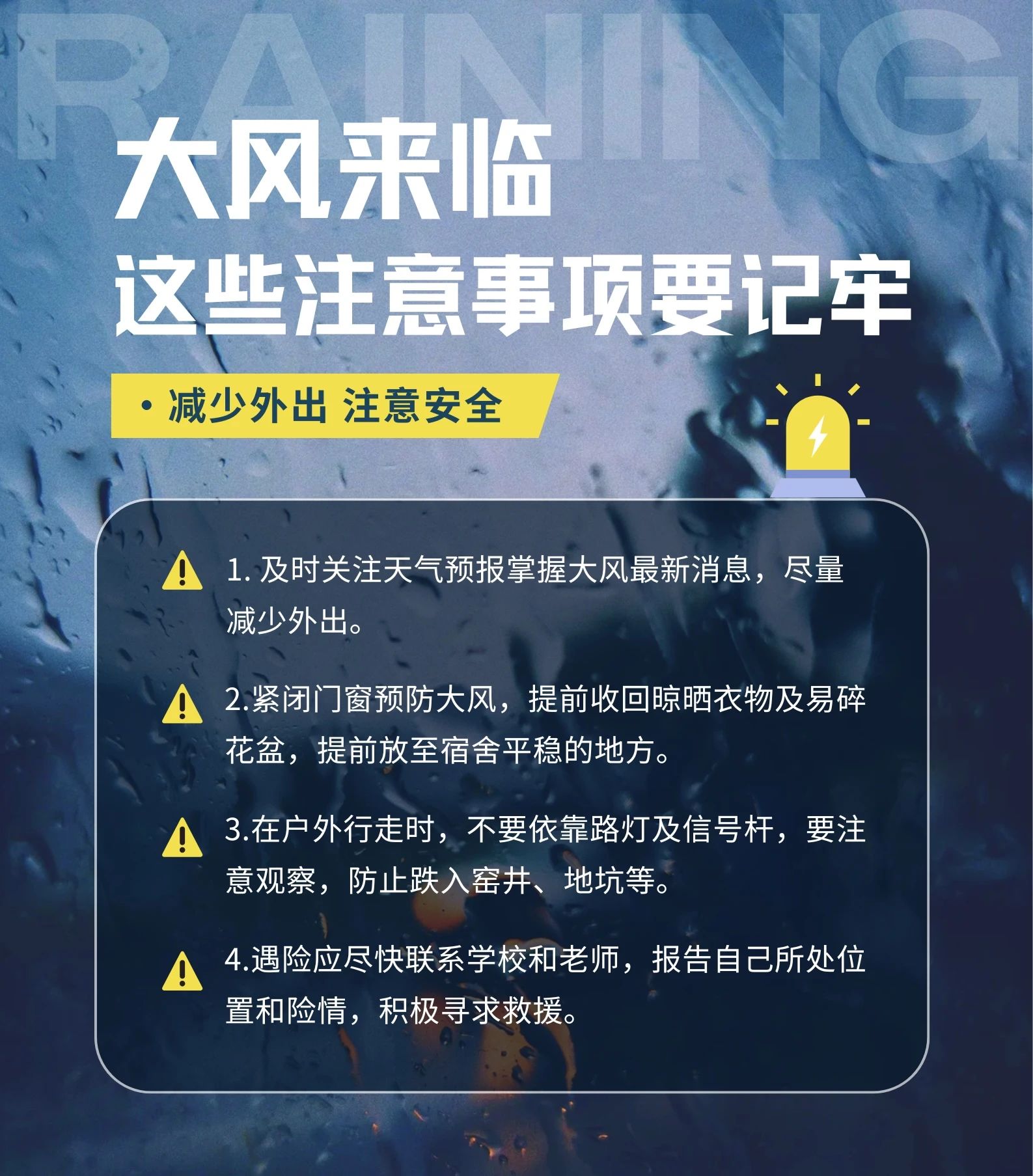同学们,安全是一切活动的基础。在极端天气面前,希望大家增强自我保护意识,以严谨、负责的态度对待安全防范工作。让我们携手努力,共筑安全屏障,平安度过此次极端大风天气。