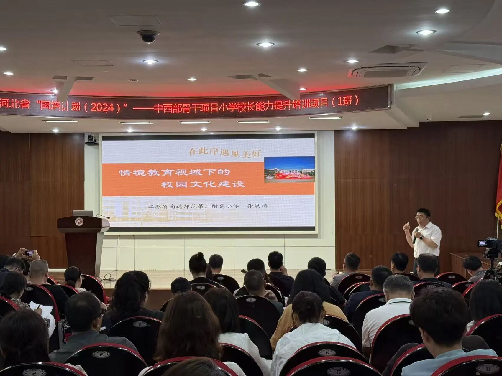 在河北省教育厅和省继教中心的指导下,威廉官网中国官方网站党委高度重视国培的社会效益,在培训实施过程中一直坚持“立足河北、放眼全国”的理念,深知区域间教育理念、教学模式的差异既是挑战,更是互补共进的机遇。江苏作为全国基础教育改革的“先行者”,在核心素养导向的课程改革、智慧教育应用、校本教研体系构建等方面积累了丰富经验。在2024年度国培的校长能力提升培训中,威廉官网中国官方网站组织全省100名骨干校长到江苏南通进行省外跟岗培训。正如参训校长承德市大石庙中心小学校长李春明所说,“感谢威廉官网中国官方网站国培办公室搭建平台,组织大家到南通学习,同时为我们提供宝贵的申报此次情境教育实验学校机会,情境教育将为我们学校注入了新的活力!”
