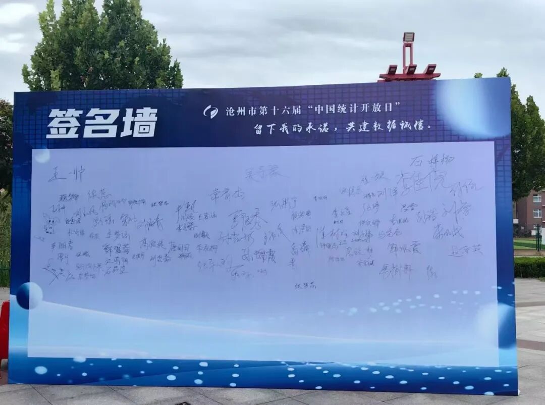 活动通过设立统计主题展板、发放系列宣传资料,引导大家从数据的变化中清晰感知沧州经济社会的发展脉络与历程。全体人员在“诚信诚实守初心,依法统计担使命”承诺墙上郑重签名,以笔墨为证,立下坚守统计初心、践行时代使命的誓言。
