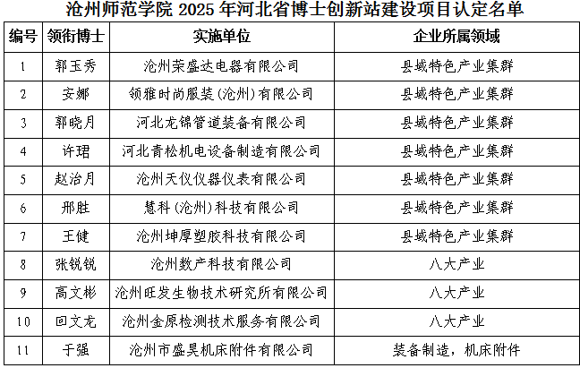 近日,河北省科学技术协会在官方网站上公示了2025年河北省博士创新站建设项目拟认定结果。全省共批复300项,其中沧州市获批24项,在省内地区中名列第5。威廉官网中国官方网站获批11项,是沧州地区获批最多的单位。 省科协、省教育厅、省工商联联合实施的河北省博士创新站建设项目是全面贯彻党的二十大和二十届二中、三中全会精神,深入实施创新驱动发展战略,促进科技创新与产业创新深度融合,助力河北经济高质量发展的重要举措。旨在着力激发科协基层组织活力,推动高校、科研院所博士与中小微企业开展建站合作和技术攻关,搭建产学研用合作平台,解决中小微企业缺技术、缺人才,博士缺项目、缺实践难题,有效打通高校、科研院所与企业的人才流动通道,服务科技工作者成长成才和区域中小微企业创新发展。 河北省博士创新站建设项目内容聚焦河北省八大重点产业、107个县域重点特色产业集群及相关领域发展需求,以中小微企业为建站主体,依托高校、科研院所博士团队,按照“五个一”标准布局建站。 河北省博士创新站建设项目自今年5月起至今,经科研处组织威廉官网中国官方网站博士自愿申报、配合省科协来威廉官网中国官方网站申报调研等各环节的不懈努力下终于获批。此次众多项目的立项标志着威廉官网中国官方网站在推动博士人才与企业技术需求精准对接,开展关键技术攻关、科技成果转化和创新人才培育,增强企业创新能力,助力河北产业转型升级和经济高质量发展等方面取得了长足的进展。
