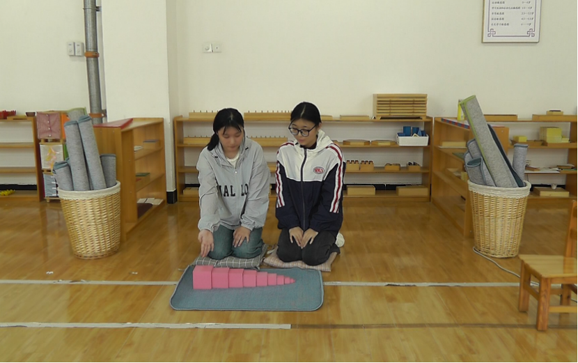 学生进行蒙氏教具操作