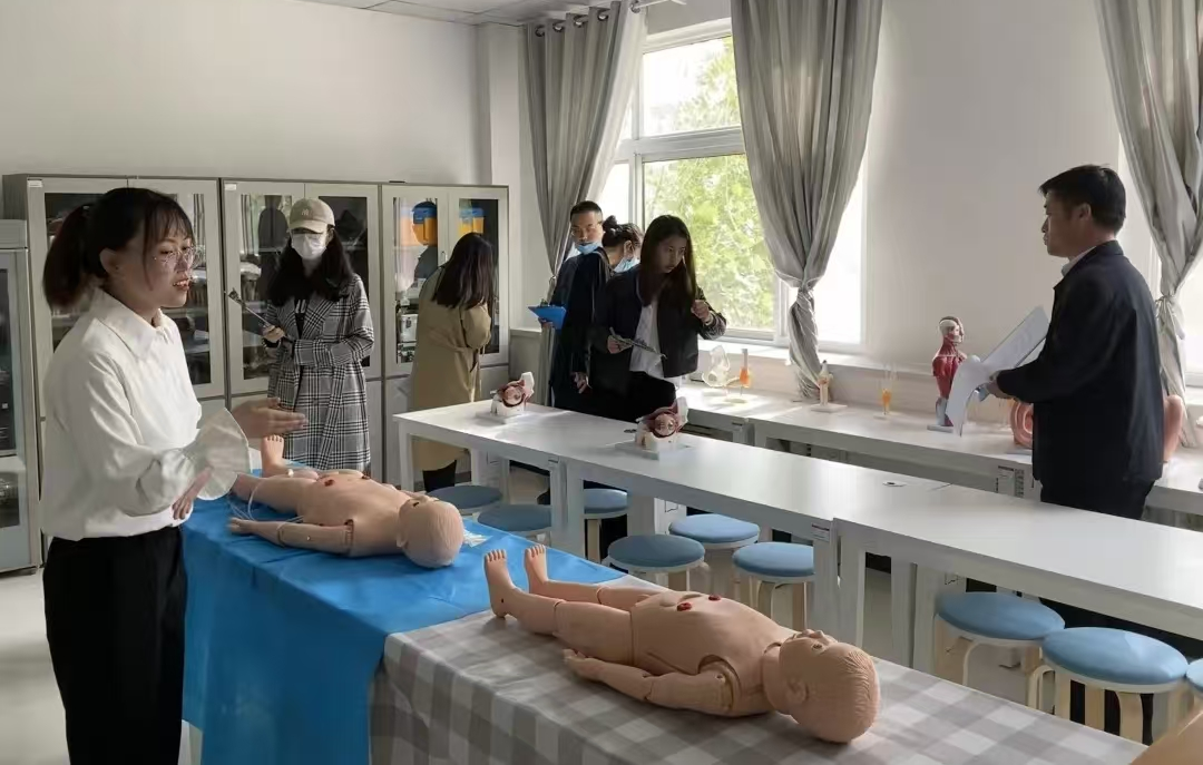 学生在婴幼儿卫生与保健实训室实践练习