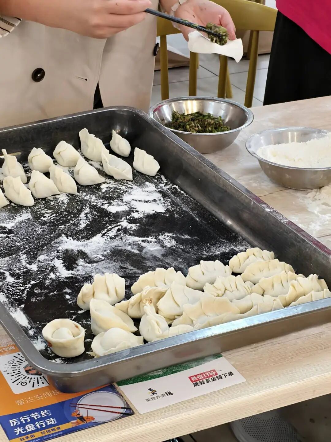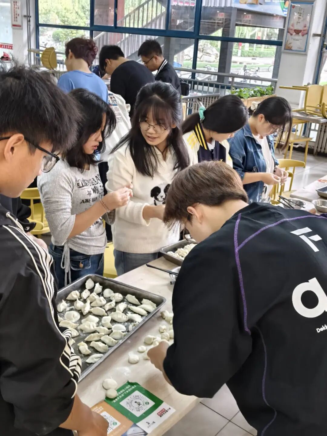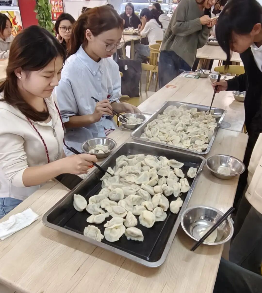 巧手齐聚,饺香满溢:一场校园里的“饺子派对” 活动现场,同学们齐聚一堂,挽起袖子,在欢声笑语中开启了包饺子的“战役”。有的同学手法娴熟,捏出的饺子个个饱满匀称;有的同学则是初次尝试,饺子形状各异,惹得大家阵阵欢笑。随着时间推移,托盘里的饺子越堆越多,它们挤挤挨挨,在灯光下泛着柔和的光,仿佛在诉说着校园里的团圆故事。