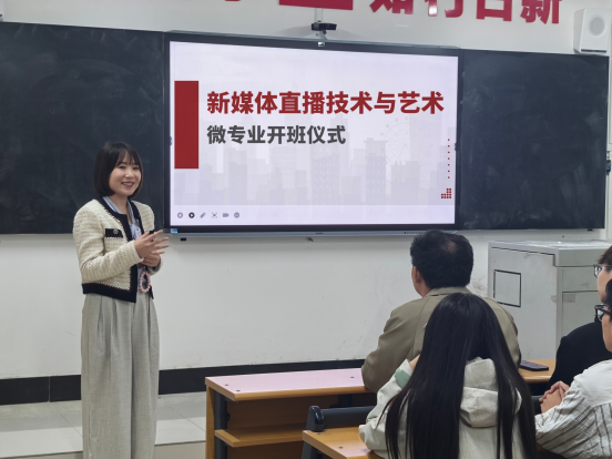 广播电视编导专业教研室主任刘笑言介绍了课程开设的背景与意义。随着新媒体直播行业的迅猛发展,市场对兼具技术功底与艺术素养的复合型人才需求日益迫切,本专业正是为填补这一缺口而设立,旨在通过系统教学,帮助学员掌握直播技术核心、提升内容创作的艺术水准。该专业紧密对接电商直播、数字文娱、短视频运营新兴产业需求,致力于为新媒体直播行业输送兼具实践能力与创新思维的高素质应用型人才,助力行业高质量发展。
