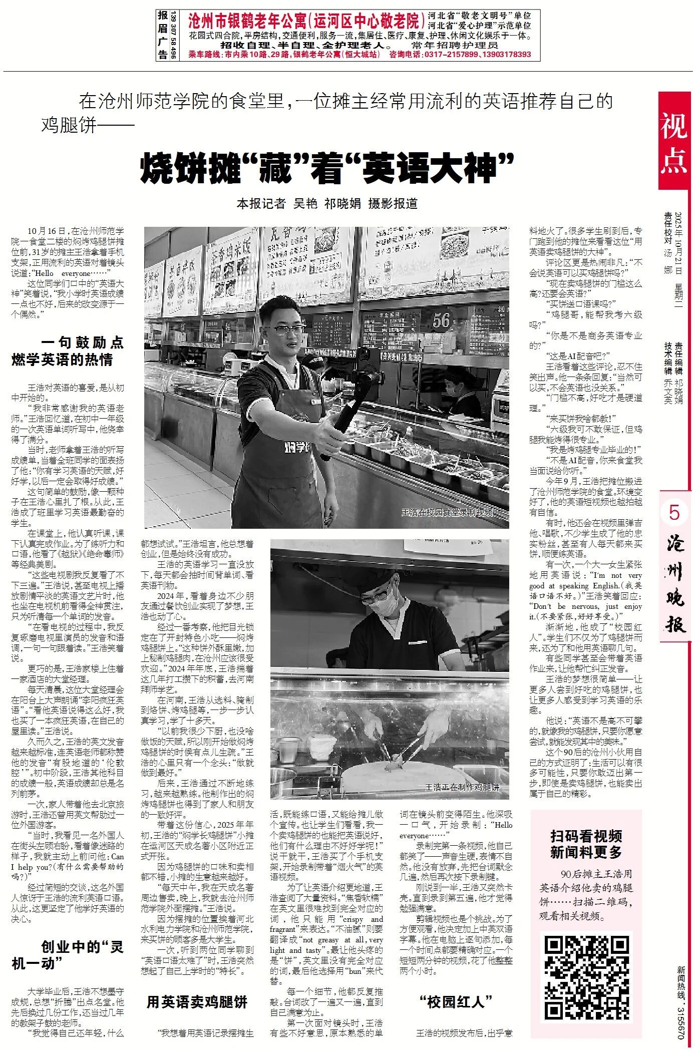 《沧州晚报》整版报道威廉官网中国官方网站食堂档口里“隐藏”的“英语大神”