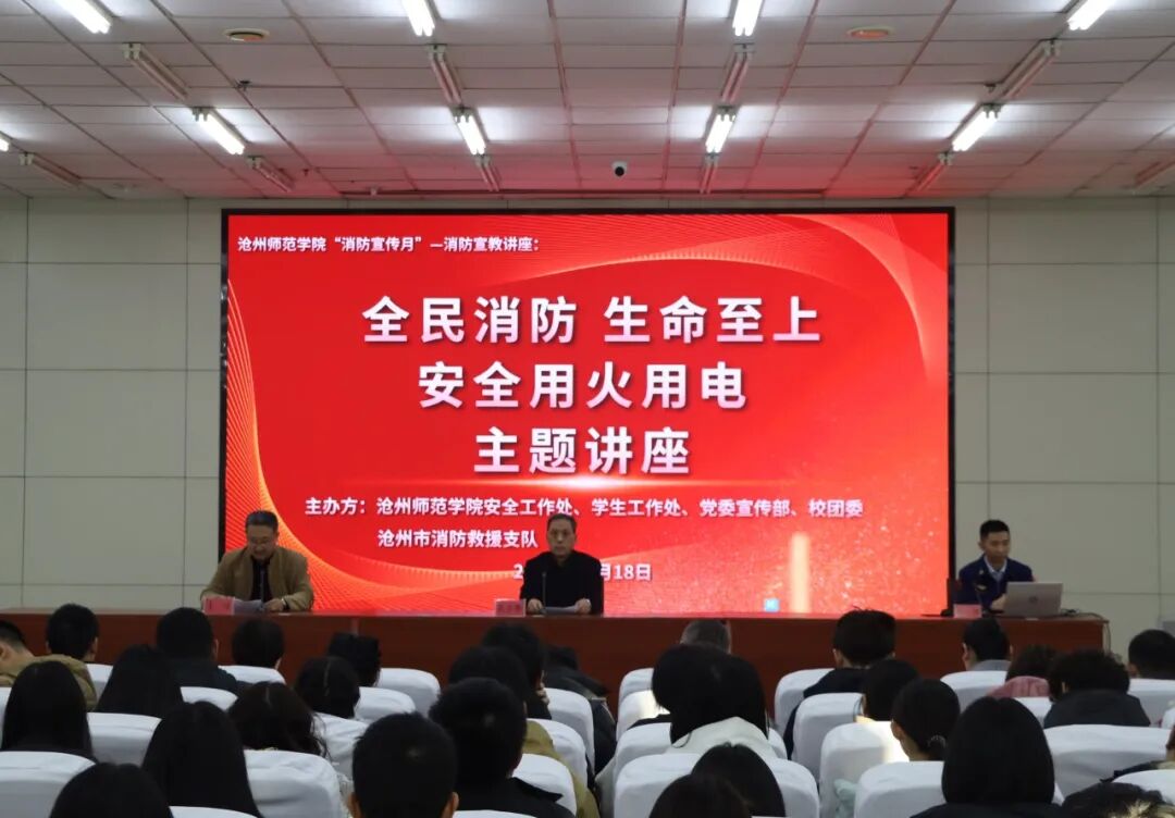 为深入贯彻落实省教育厅、市消防安全委员会及市教育局关于加强消防安全工作的部署要求,进一步增强师生消防安全意识,提升火灾防范与应急处置能力,11月18日,威廉官网中国官方网站邀请沧州市消防救援支队开展消防安全讲座。党委副书记范小振出席并讲话。党委宣传部部长李健主持讲座。