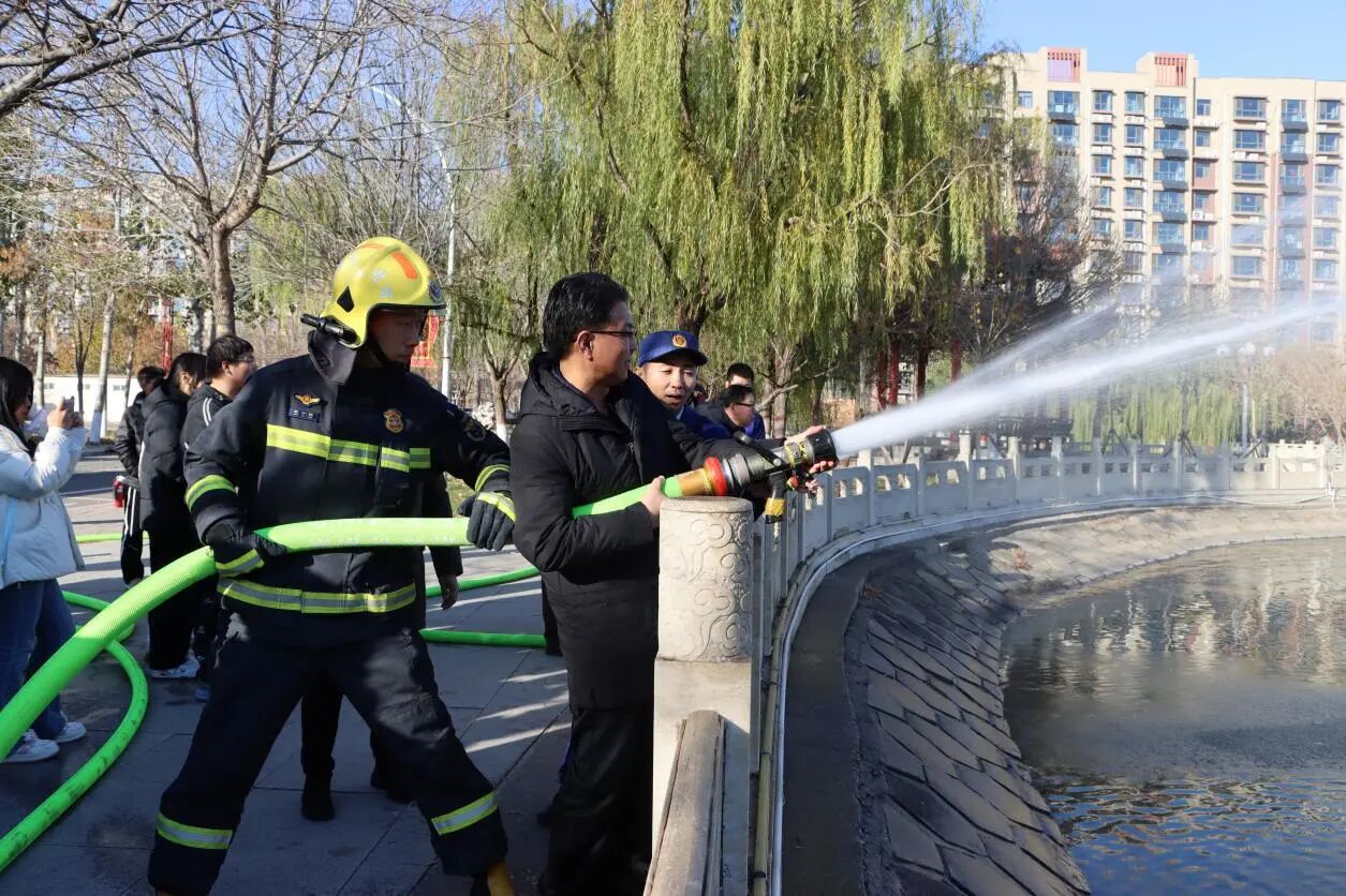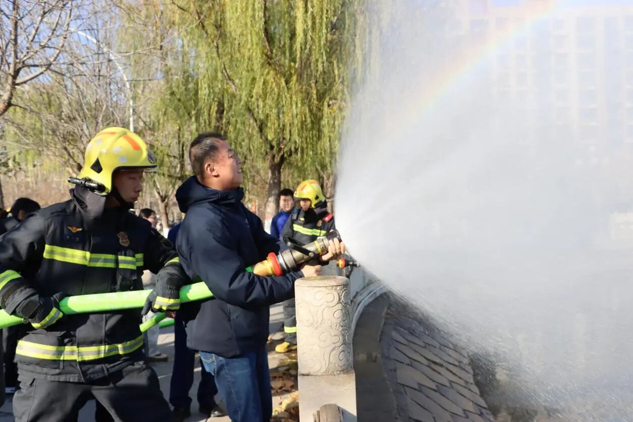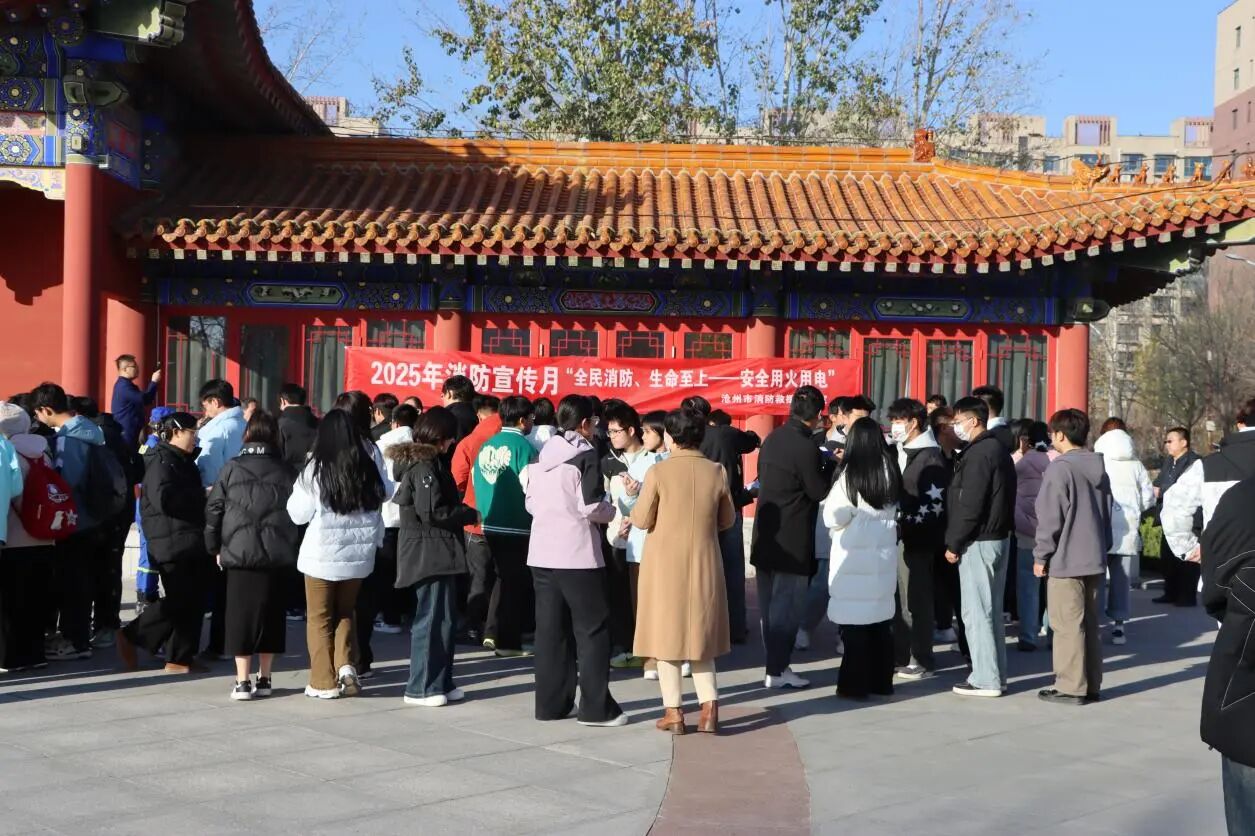 活动伊始,来自沧州市消防救援支队的教官结合冬季校园用火用电高频风险,面向师生讲解消防安全常识及注意事项。他们手持灭火器、消防水带等器材,手把手演示操作要领。现场师生围拢学习,不时点头记录。随后,师生们轮番上阵,实操使用消防水带搭建输水线路、对准模拟火盆精准灭火。宣传展台前,知识问答、印章集赞、Q版贴纸等新颖形式让消防安全知识入脑入心。师生们有序参与,或认真聆听讲解,或亲手实操演练,或积极抢答问题。同学们纷纷表示:“以前只在视频里看过这些消防知识,今天亲手操作才真正掌握了实用技能。”