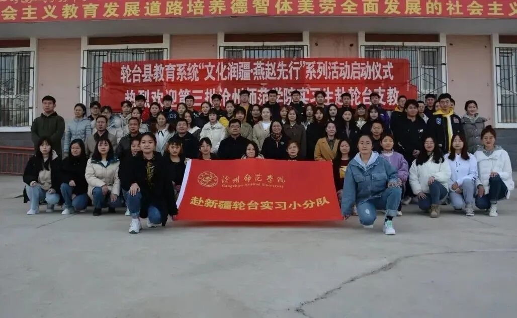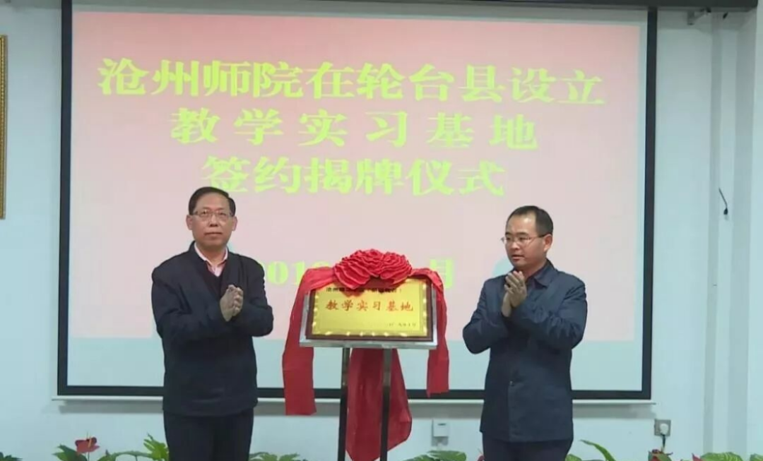 常态化的基地建设是教育援疆持续深入的战略支点。为将援疆支教从项目式合作提升为稳定的校地协同育人平台,2019年11月4日,学校与轮台县正式签署合作协议并隆重举行“教学实习基地”揭牌仪式。基地的建立,标志着沧轮两地的教育合作进入了制度化、常态化的新阶段,为后续持续派遣实习生、开展教师培训、深化教研合作奠定了坚实的组织基础。