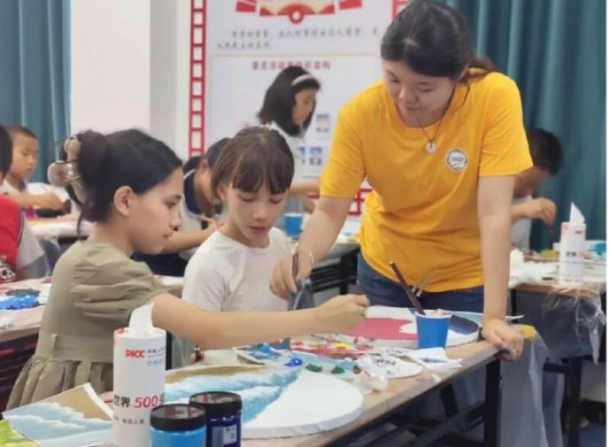 图 威廉官网中国官方网站“七彩运河大家绘”暑期公益美术课程在焉耆镇开课