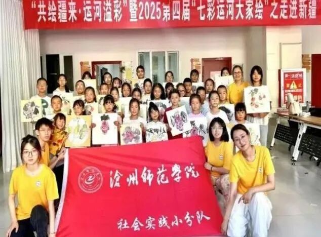 特色美育品牌是文化润疆的创新实践。“七彩运河大家绘”美育品牌积极响应“文化润疆”号召,自2021年起连续四年组织师生团队赴新疆巴州焉耆县开展“共绘疆来·运河溢彩”实践活动,在迎宾社区、友好社区等地设立公益美育课堂,累计吸引500余名新疆各族青少年参与;深度融合沧州运河文化与新疆风土人情,开设“天山风光创意色彩”“铁狮主题非遗掐丝”“丝路主题拼贴画”等8门特色课程,让大运河文化与天山风情在画纸上交汇融合。2024年4月,“春水汤汤:从大运河到塔里木河”郭玉华教授作品音乐会成功举办,其中笛子独奏曲《天山脚下》通过走访新疆非遗基地采风创作,生动展现了天山风光与民族团结景象;《胡杨礼赞》以典型的新疆音乐节奏赞美胡杨坚贞不屈的精神,成为弘扬援疆精神的音乐力作。