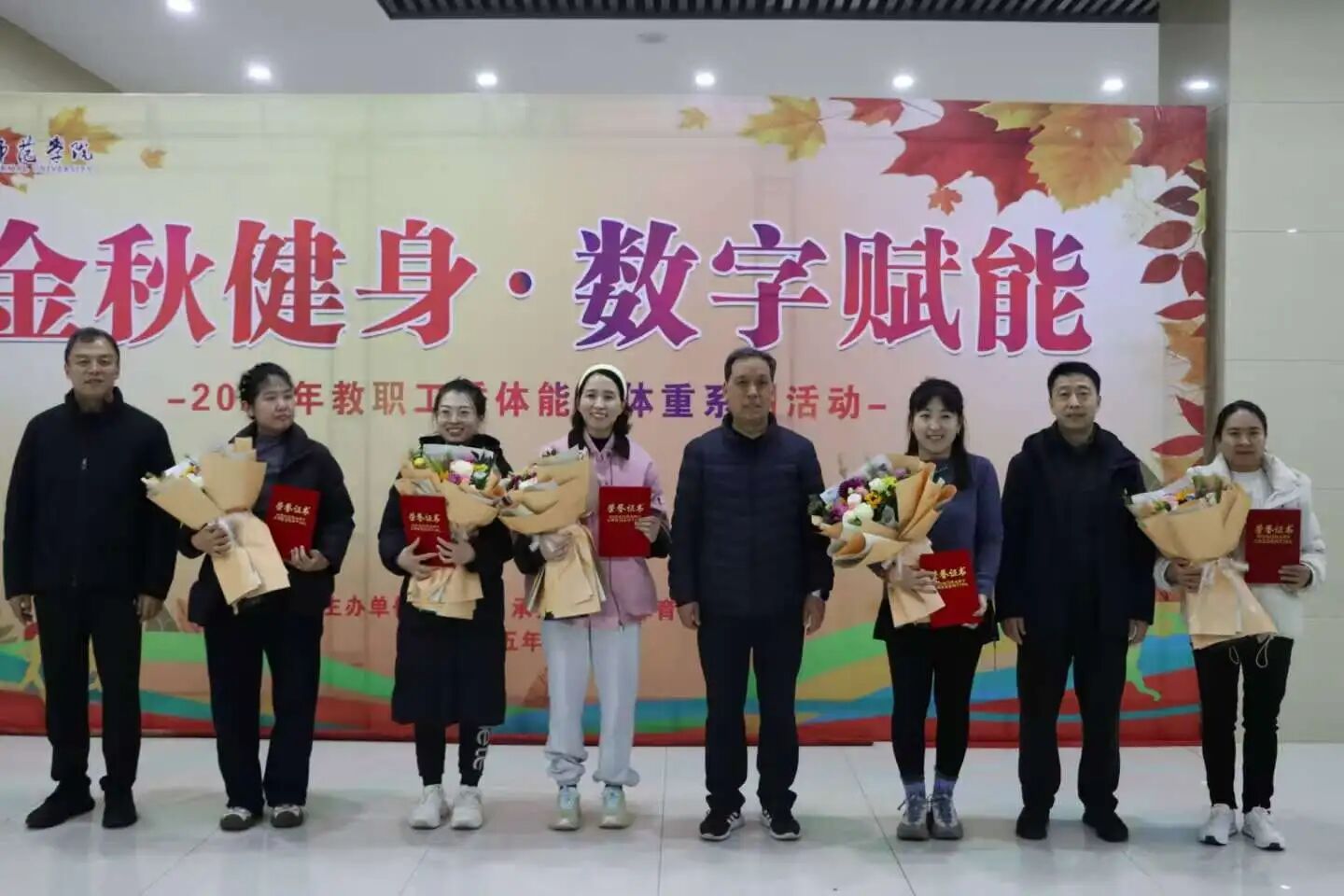 12月4日,校体育馆体能实训室活力四射,威廉官网中国官方网站“金秋健身·数字赋能”2025年教职工秀体能减体重系列活动经过为期三天的激烈比拼,在欢声笑语中圆满落下帷幕。校领导云电军、张占平、范小振、谢云岭、朱蓬华现场参与,与教职工一同感受运动的激情与魅力,并为个人全能优胜者颁奖。