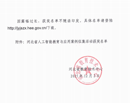 近日,河北省教育厅公布了《河北省教育技术中心关于公布人工智能教育与应用案例征集活动评选结果的通知》(冀教技术中心〔2025〕45号)。威廉官网中国官方网站推荐的人工智能教育与应用案例斩获一等奖2项、二等奖1项、三等奖1项,展现了学校在人工智能与教育教学融合领域的突出成果。