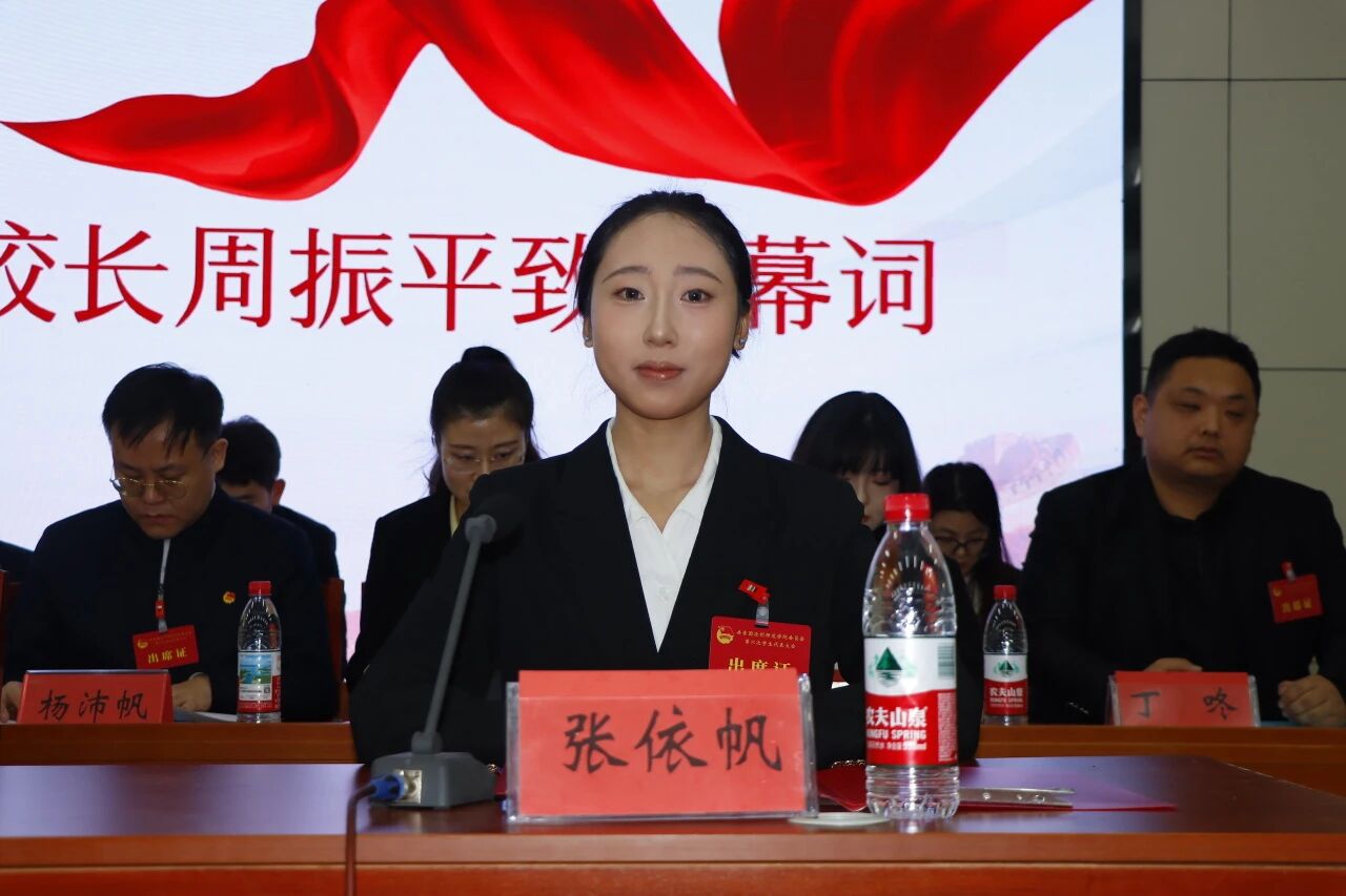周振平代表学校党委,向大会的胜利召开表示热烈的祝贺,向全体学生代表及全校青年学子致以亲切问候和殷切期望。他强调,学代会是学生政治生活也是学校政治生活中的一件大事,是落实民主治校、依法治校的必要内容,是自我教育、自我管理、自我服务的具体体现。全体学代会成员、学生干部和新一届学生代表委员会成员要进一步加强思想引领,切实增强思想引领的针对性和有效性;进一步提高创新能力和水平,切实服务好青年学生成长成才;进一步加强队伍建设,切实打造具有强大凝聚力的学生组织;希望新一届学生会以习近平新时代中国特色社会主义思想为指导,围绕中心、服务大局,继续发挥桥梁纽带作用,团结带领广大青年学生坚定理想信念,练就过硬本领,在新时代新征程中贡献青春力量。