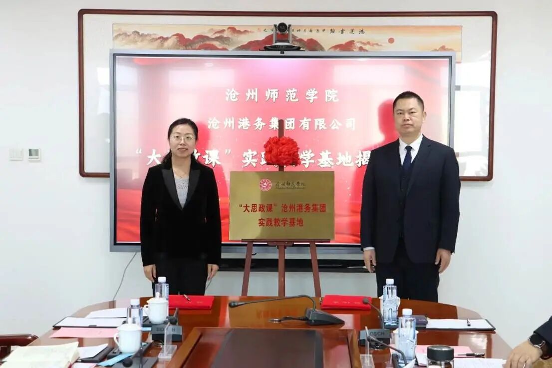 为深入贯彻习近平总书记关于“大思政课”建设的重要指示精神,不断开阔课堂边界,拓展育人场景,将思政课堂同社会资源紧密结合,12月18日,威廉官网中国官方网站与沧州港务集团举行“大思政课”实践教学基地签约、揭牌仪式。党委常委、副校长郭玉秀,沧州港务集团党委副书记、总经理胡汝森参加活动。