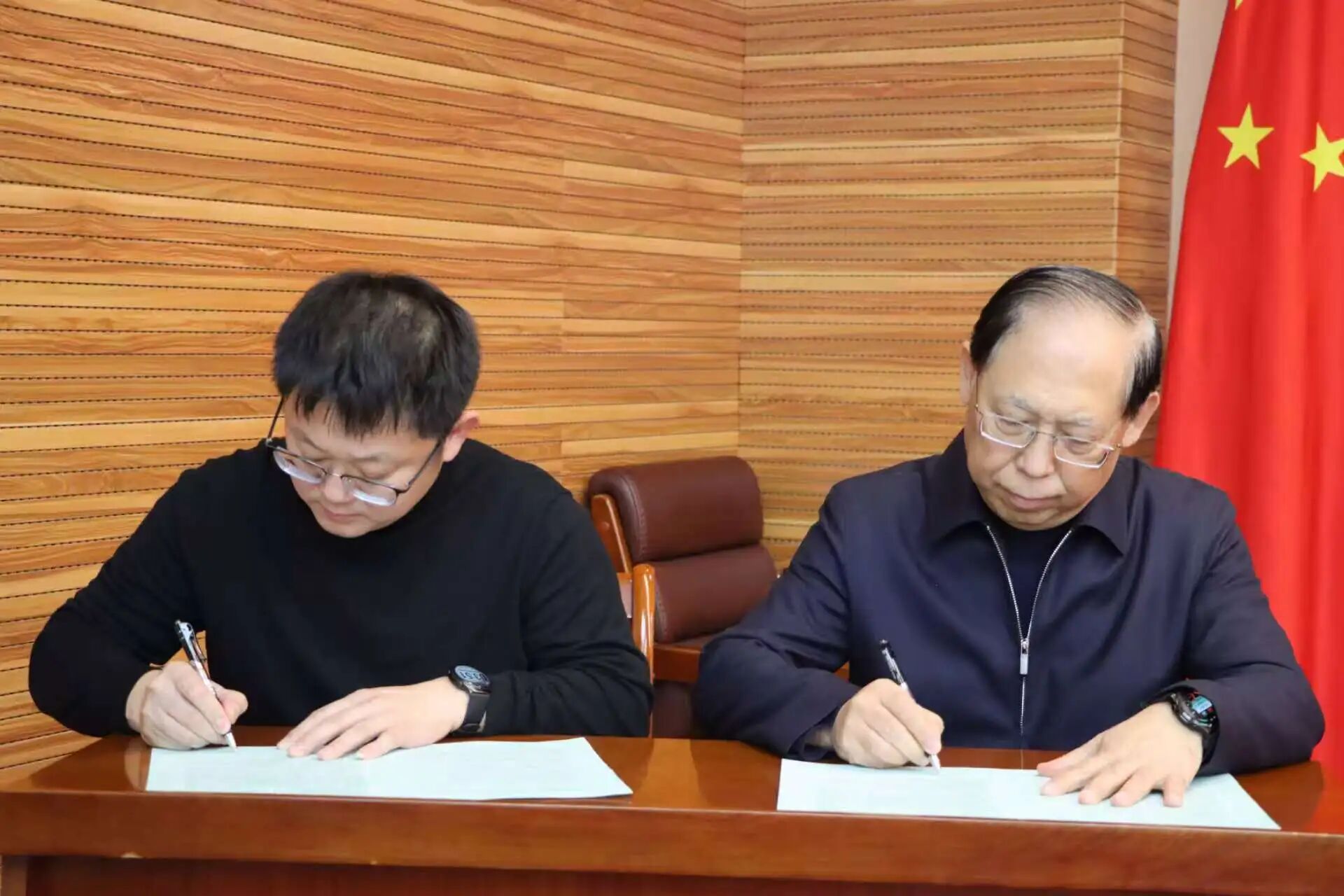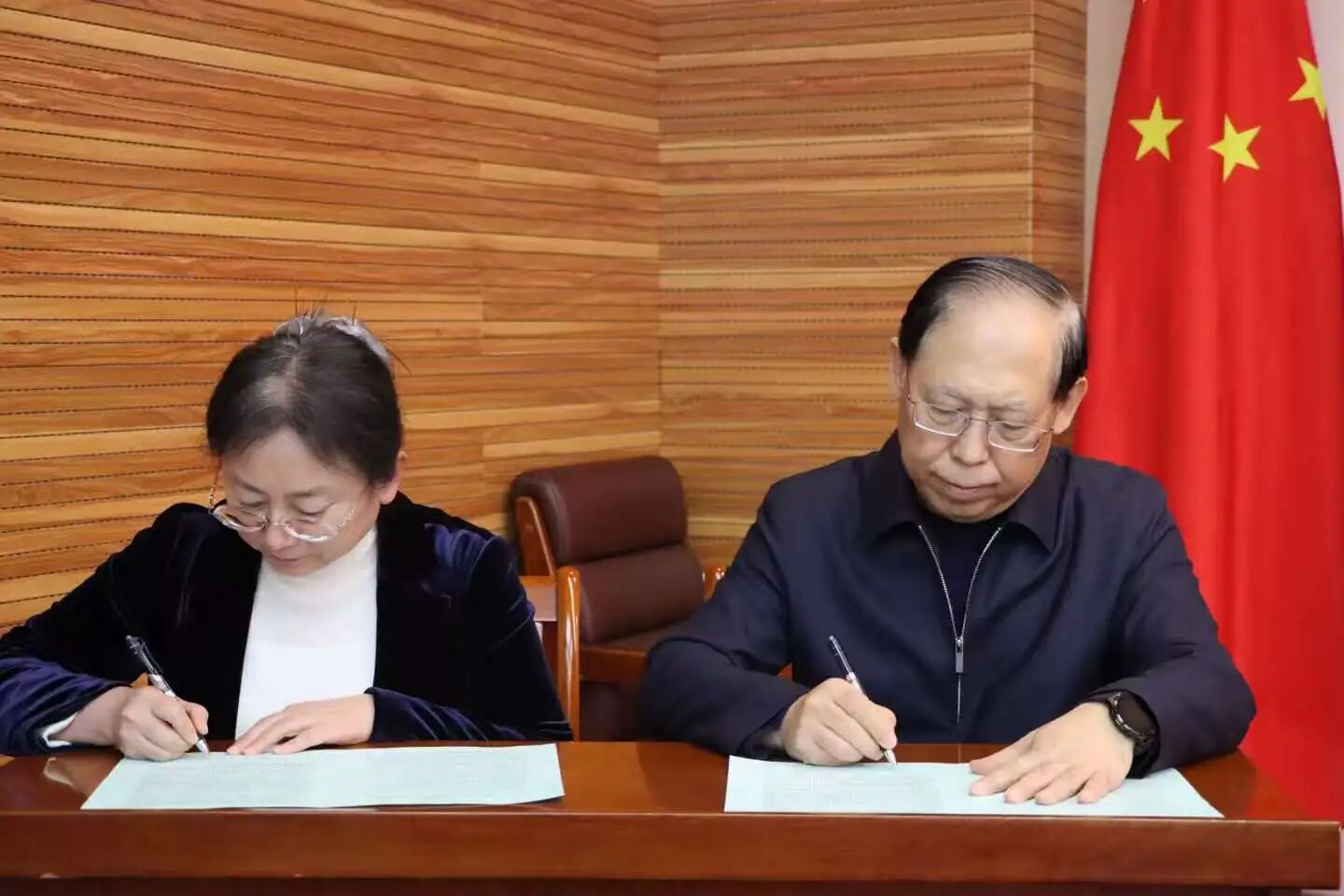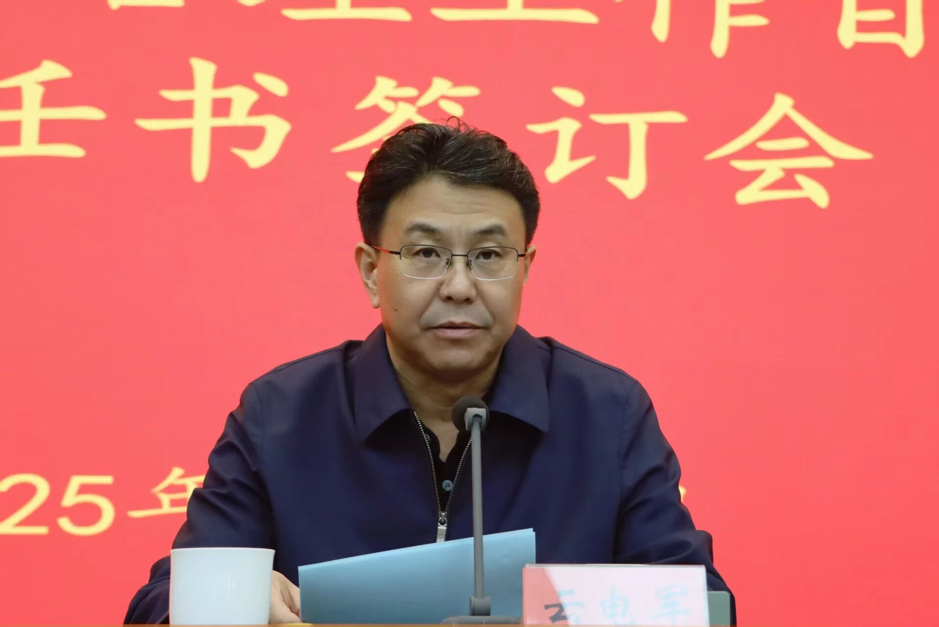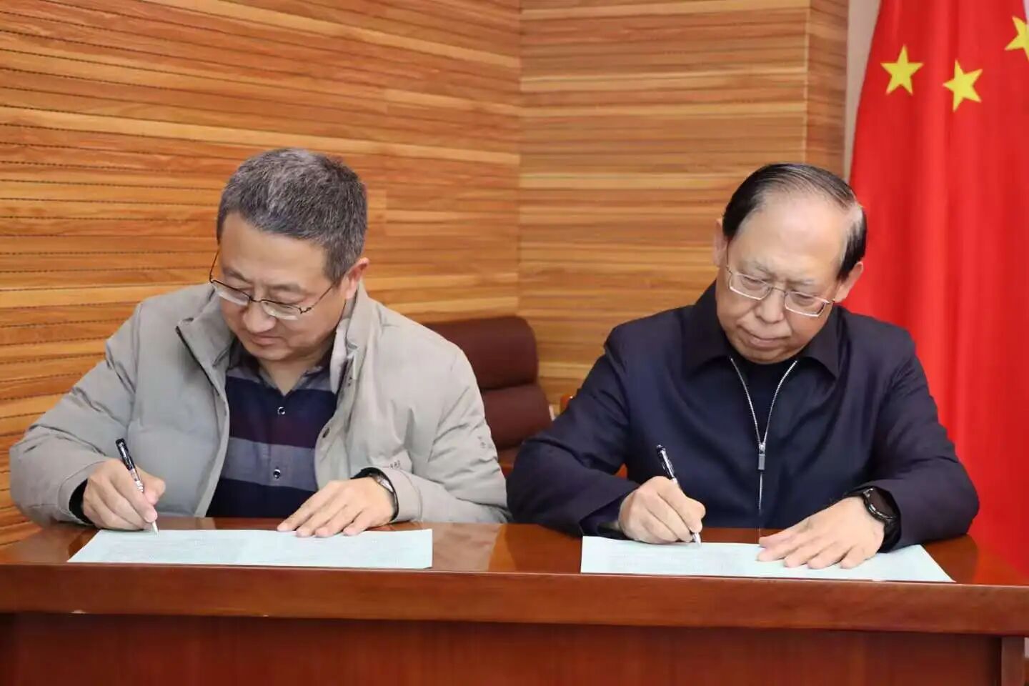 张占平与党委宣传部、后勤管理处、机械与电气工程学院、外国语学院相关工作负责同志签订了安全稳定责任书。