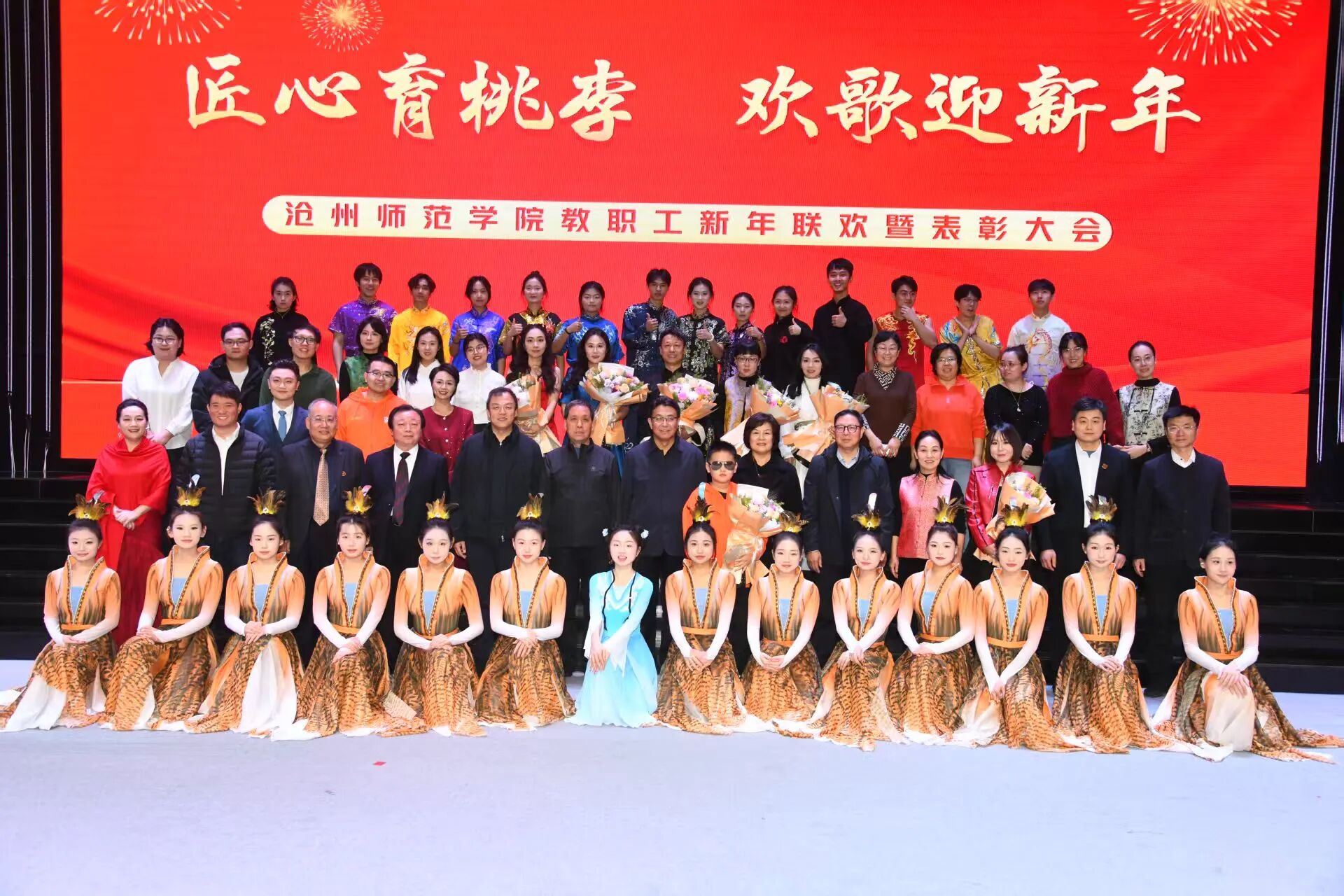 且将旧符添新彩,共赋人间锦绣程。12月26日下午,“匠心育桃李 欢歌迎新年”威廉官网中国官方网站2026年教职工新年联欢暨表彰大会于齐越大讲堂温情启幕。校领导云电军、范小振、高颖、周振平、朱蓬华与全校教职工欢聚一堂,共赏视听盛宴,共话新年期许。