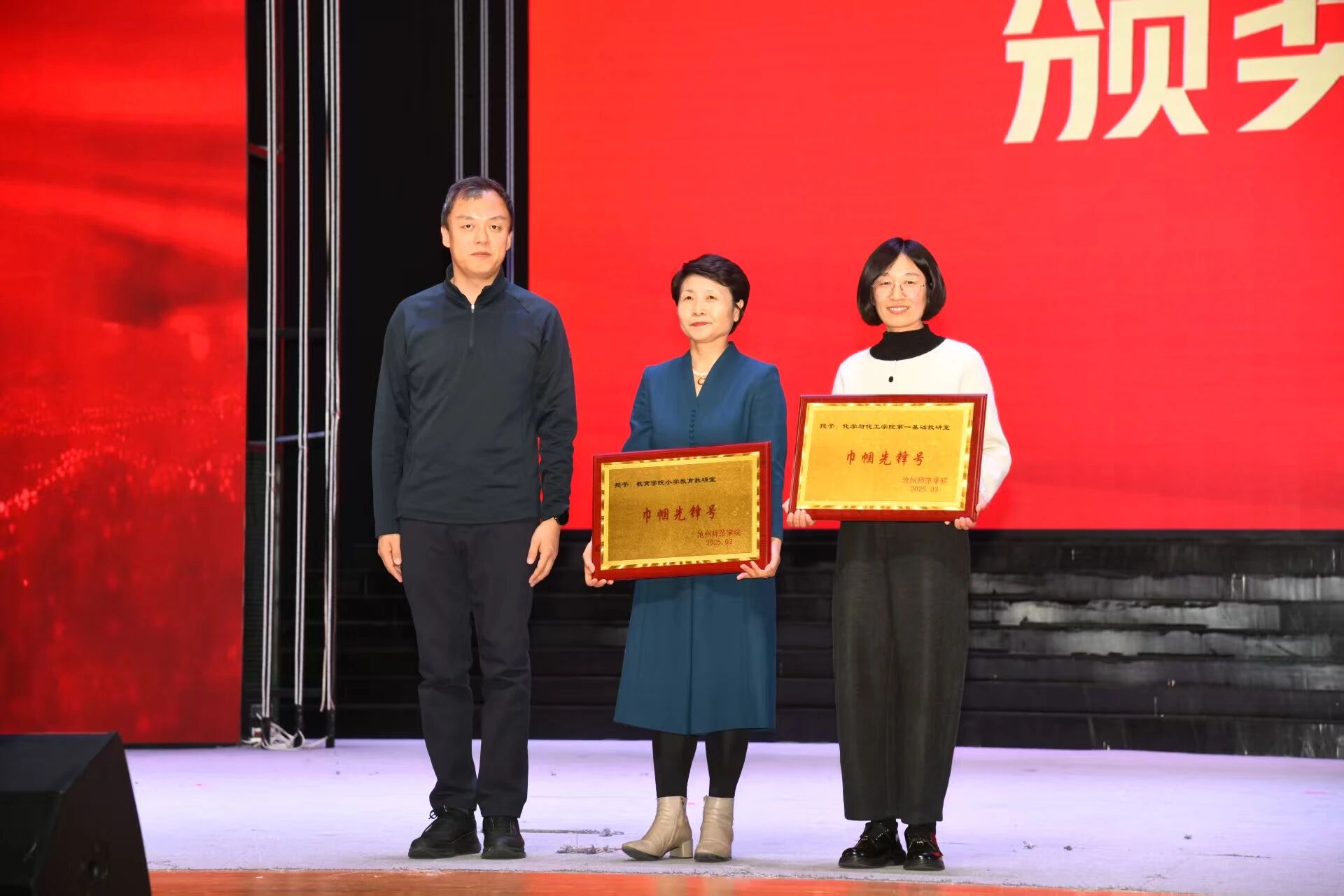 活动现场,校领导分别为2025年威廉官网中国官方网站“巾帼先锋号”和“巾帼模范”、文体类优秀教职工、“爱沧州·健步走运河”教职工健步走“优秀组织奖”、秋季田径暨冰雪运动会拔河奖项、金秋健身·数字赋能—2025年教职工秀体能减体重系列活动优秀组织奖、文体活动贡献奖的获奖团体或个人颁奖。灯光下的荣耀时刻与掌声中的真挚敬意相映成趣。从热血沸腾的奋勇争先到无私奉献的潜心育人,从专项工作的深耕细作到实践成果的精彩呈现,师院人的榜样故事凝聚着坚守初心、勇毅前行的精神内核,也鼓舞广大师生以更加饱满的热情、积极的态度,书写沧州师院发展的崭新篇章。