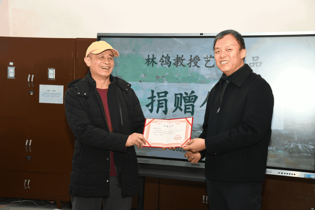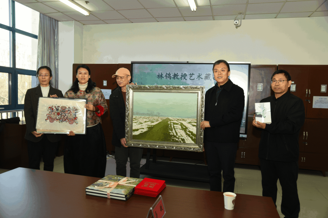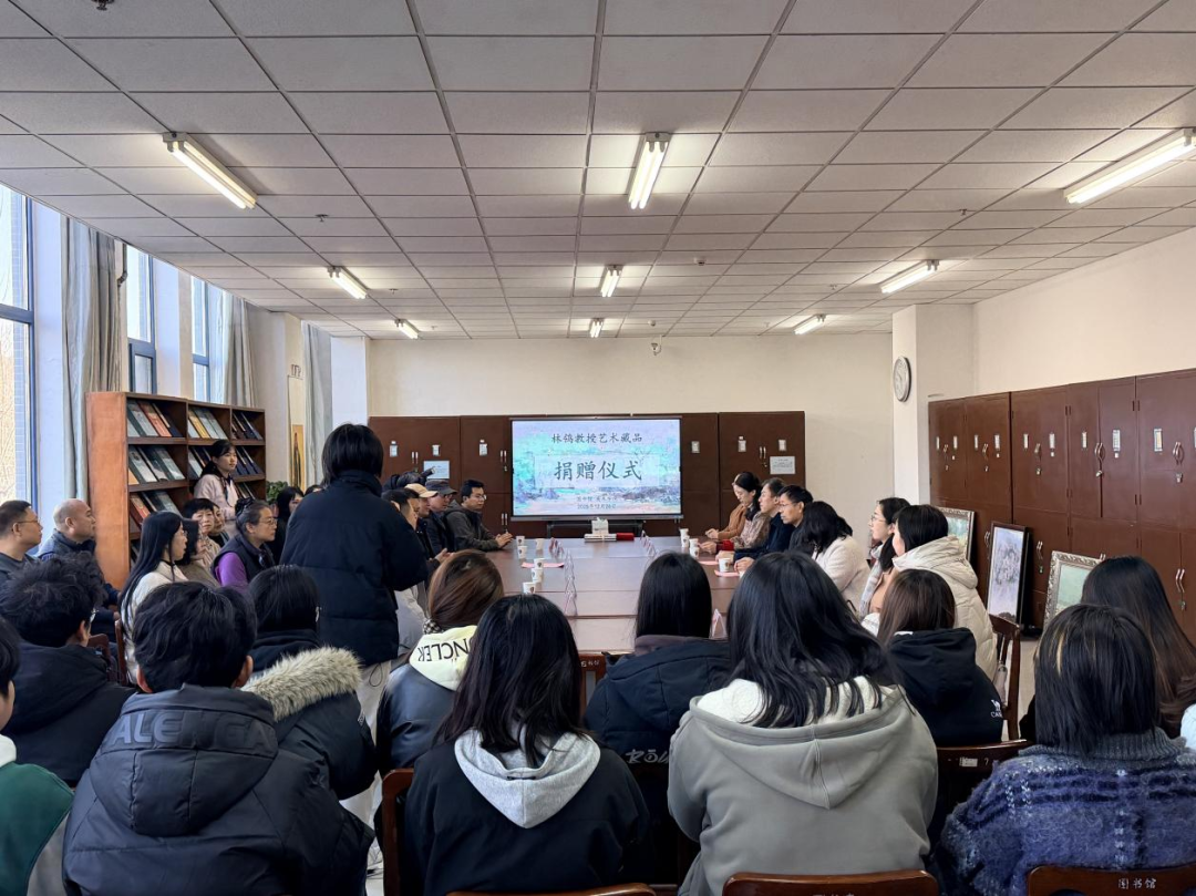 林鸰教授深耕威廉官网中国官方网站讲台23载,即便离开教学一线,依旧心系学校发展建设。他在发言中深情回顾了与沧州结缘35载的深厚情谊,讲述了身为教育世家薪火相传的初心与使命。此次,林教授向学校无偿捐赠油画作品、艺术专业书籍及民间美术藏品等珍贵物资,这份馈赠既饱含着对莘莘学子成长成才的殷切期盼,更希望以丰富的艺术资源赋能校园文化建设,为学校美育工作的深耕细作注入鲜活力量。