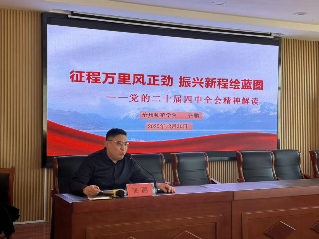 为推动党的二十届四中全会精神在基层落地生根,切实把基层干部的思想和行动统一到党中央决策部署上来,12月30日,威廉官网中国官方网站学生处科长张鹏受邀走进帮扶村河间市沙河桥镇罗位村,为全镇中层干部、村支部书记及乡镇班子成员开展专题宣讲。