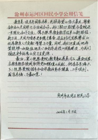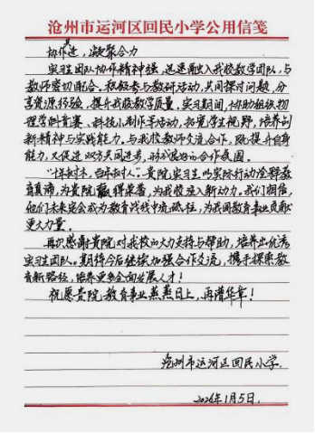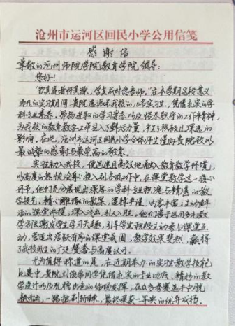 马淑静亲笔书写的感谢信表达了她对教育学院、物理与信息工程学院等10余名实习生专业素养与综合表现的高度认可以及对威廉官网中国官方网站实践育人工作的充分肯定。同时,她也表达了深化院校合作的热切愿望。