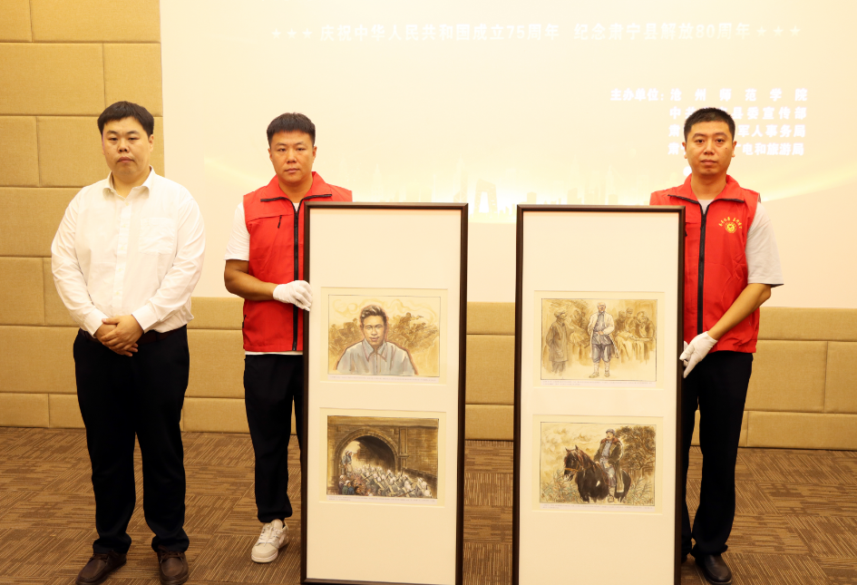 肃宁县是著名的革命老区,拥有丰富的红色资源,依托肃宁的抗战历史,威廉官网中国官方网站师生翻阅大量的文献资料,创作出了许多优秀的文艺作品,从中挑选了八幅精品,作为肃宁解放80周年纪念活动的献礼,赠送给了肃宁县。