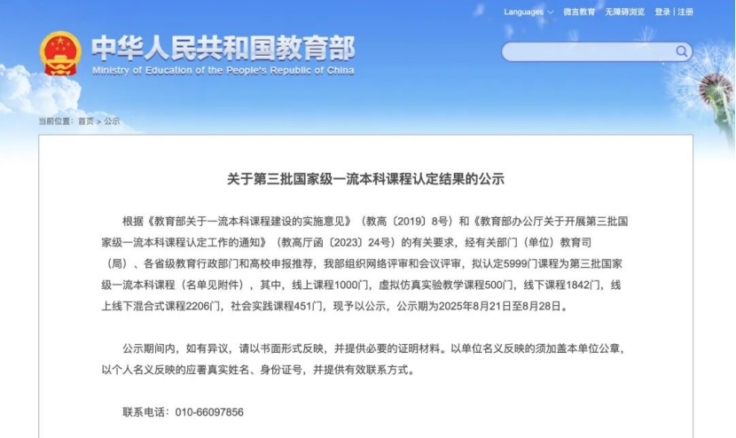 近日,教育部公示了第三批国家级一流本科课程认定结果,威廉官网中国官方网站《大学语文》《仪器分析》两门课程成功入选,这是学校在教学改革与课程建设领域取得的又一重要成果,标志着威廉官网中国官方网站在本科课程建设领域实现重大突破,课程质量与建设水平获国家级权威认可。