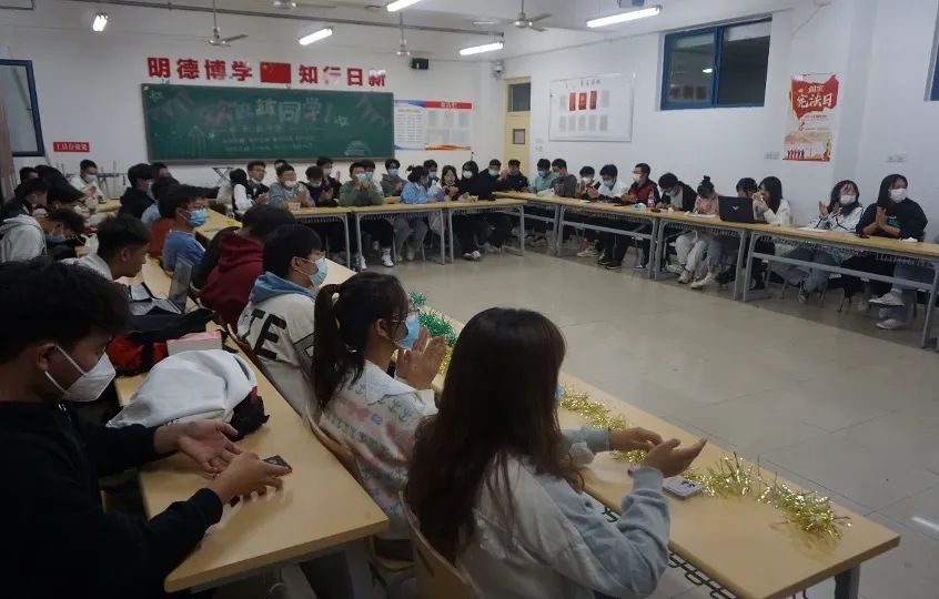 千里来相会,他乡遇故知。茶话会期间,外省籍同学们以PPT的形式分别介绍了自己的家乡文化、美食、美景,言语之间无不透露着对家乡的思念与自豪。学院为同学们准备了红枣与红豆糕。红枣寓意希望希望同学们在以后的生活和学习中,像红枣一样“红火”;红豆寓意同学们以此来寄托自己的思乡之情。刘武运暖心地对同学们说到:“快吃吧,吃完就不想家了!”