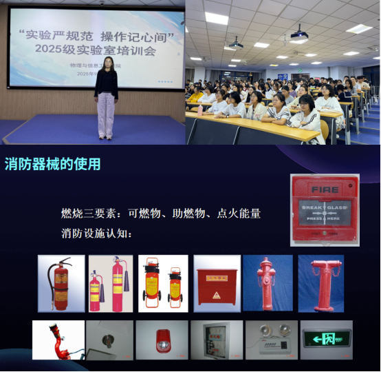 为切实强化学生的实验安全意识,系统规范实验操作流程,从根本上保障实验教学与科研工作的安全、有序、高效开展,物理与信息工程学院于9月22日至23日举办了两场面向2025级全体新生的“实验严规范,操作记心间”实验室安全专题培训会。本次培训会由学院精心组织,屠晨晨老师担任主讲,320余名2025级本科新生分批次参加培训。