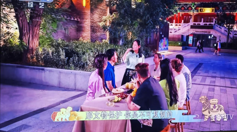 在拍摄现场,张海燕教授与著名表演艺术家王洛勇、央视春晚“黛玉”扮演者姚尧及四位留学生围坐论道,开启了一场跨越时空的文化对话。镜头前,张海燕引经据典:从《豳风·七月》“七月食瓜,八月断壶”追溯青县羊角脆的千年种植史;借“八月剥枣,十月获稻”解读沧州金丝小枣的采摘传统;以《鲁颂·泮水》“食我桑黮,怀我好音”探寻泊头桑葚的文化寓意。她让《诗经》中的饮食记载与沧州风物一一呼应,使当地美食在古老诗篇的映衬下更显韵味。