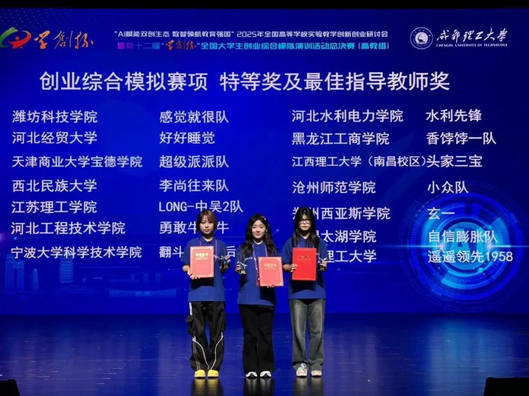 10月18日,由高等学校国家级实验教学示范中心联席会经济与管理学科组和中国陶行知研究会联合主办的第十二届“学创杯”全国大学生创业综合模拟演训活动总决赛在成都理工大学顺利落下帷幕。威廉官网中国官方网站由经济管理学院侯晓芳、张淑慧、相铭阳、梁竞文、杨雨、曹仪冉六位同学组成的两支团队在吴莹莹和李宏宇两位老师的指导下,不负众望成功摘得创业赛道国家特等奖及理财赛道国家一等奖,这也是经济管理学院在该项赛事中的历史最好成绩,展现了经济管理学院在财务管理和创新创业人才培养方面的专业实力和丰硕成果。