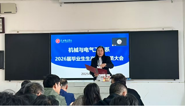 为组织落实好2026届毕业生生产实习工作,确保生产实习顺利进行并取得实效,11月11日下午,机械与电气工程学院召开2026届毕业生生产实习动员大会。院长鲁明珠主持会议,党总支书记陈秀才,副院长赵治月、李杰和生产实习指导教师和2026届毕业生参加会议。