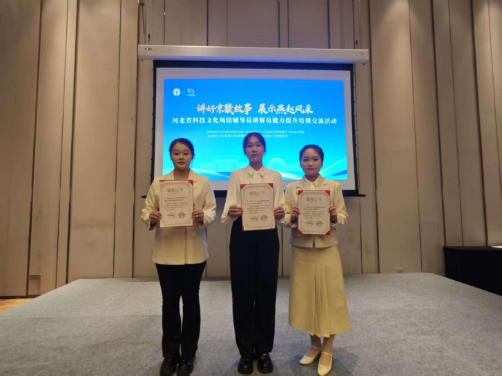 在讲解员交流展示环节,马克思主义学院陈嘉颖、付思盈、郭雨彤三位讲解员以《新声传古韵,青春铸华章》《红心映燕赵,声声诉峥嵘》《讲活烽火英雄事,彰显燕赵赤子风》三场生动的演讲,展现了师院学子的思政素养与青春风采。她们立足沧州本地红色资源,生动地演绎英烈事迹,通过案例拆解将思政理论融入具象场景,让红色故事兼具理论深度与情感温度,以真挚情感与得体表达赢得了与会专家赞誉,分别获三等奖、优秀奖。