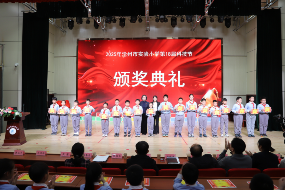 随后,双方代表签署共建协议,迟建文与杨丽萍共同为“物理与信息工程学院教育教学实践基地”和“科学教育研学基地”揭牌。在聘书颁发环节,刘业堃被聘为沧州市实验小学科学副校长,吴沫虹、胡晴晴分别受聘为科学教育顾问、科技辅导员;沧州市实验小学吕春龙、李艳两位教师受聘为物理与信息工程学院实践导师,为双方师资共建、教研互通筑牢基础。仪式现场还为科技节获奖学生举行颁奖仪式,刘业堃以科学教育为主题开展专题讲座,为在场师生带来一堂生动的科学启蒙课。