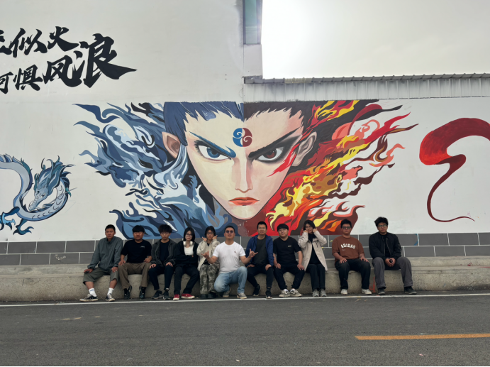 2025年4月16日至26日,学院优化团队结构,在许国超带领下,10名学生和4名指导老师完成5幅聚焦品牌塑造和产业导流的墙绘,总面积400多平方米。