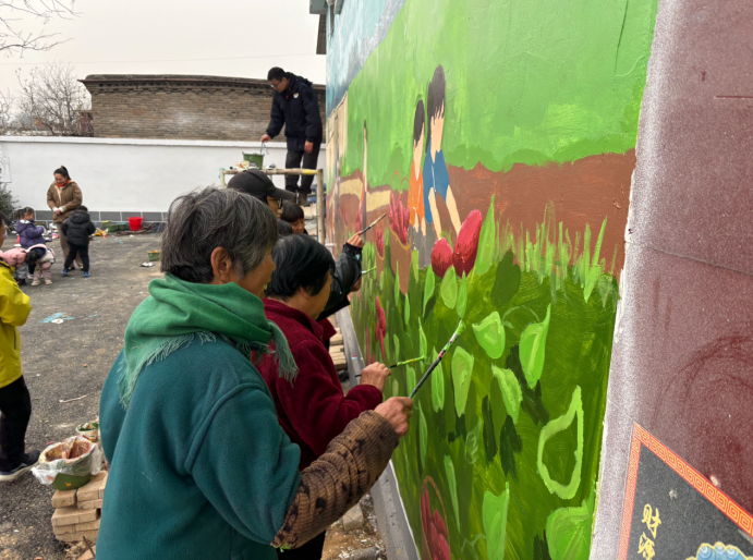 2024年12月2日至15日,学院派出由教师许国超、赵虹霖和14名学生组成的团队,面对冬季施工的挑战,高质量完成了12幅主题墙绘,总面积约500平方米。