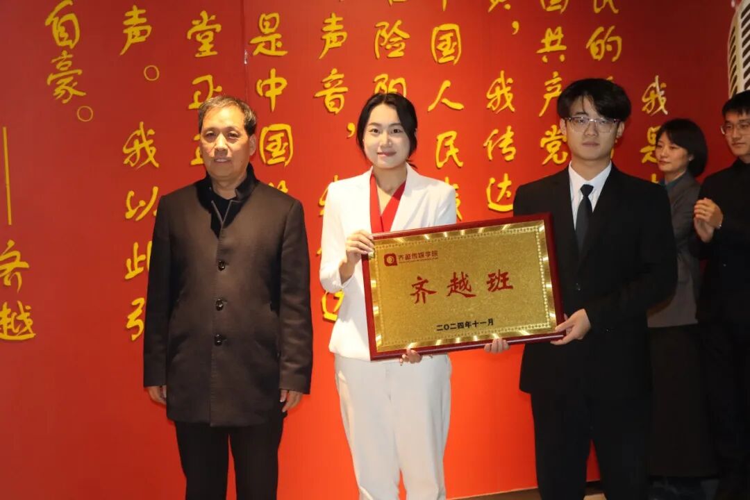 仪式上,齐越传媒学院院长张海燕致辞,齐越传媒学院党总支书记潘治钢宣读了《齐越传媒学院关于授予“齐越班优秀学生”荣誉称号的意见》。