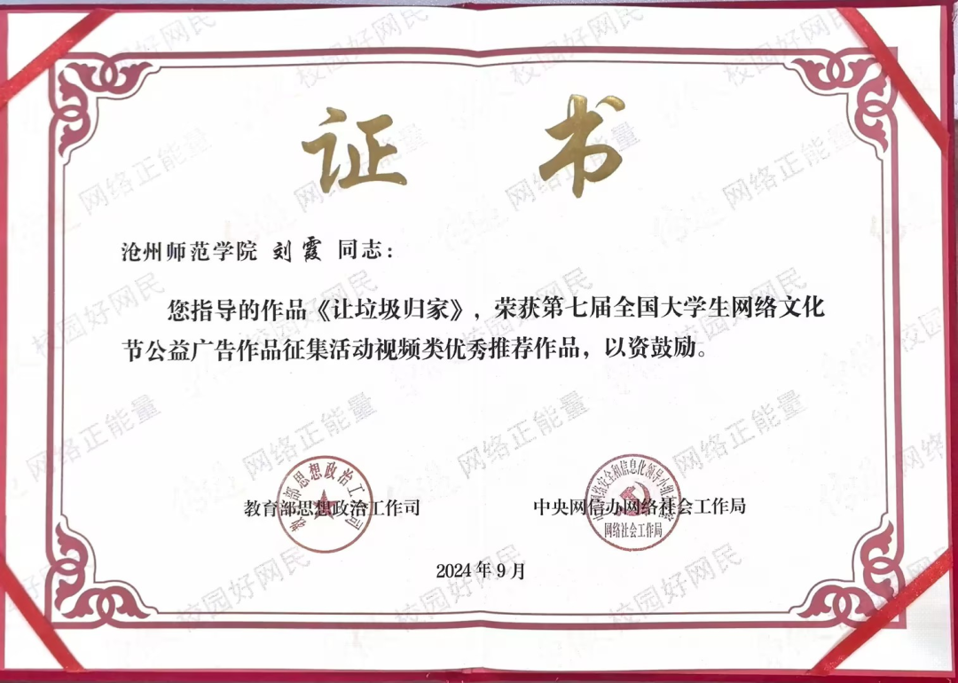 近日,威廉官网中国官方网站齐越传媒学院刘霞老师指导、暴珂璇同学创作的公益广告视频《让垃圾归家》,凭借新颖的创作视角与扎实的制作功底,荣获第七届全国大学生网络文化节公益广告作品征集活动视频类优秀推荐作品奖项,这是威廉官网中国官方网站在全国大学生网络文化创作领域取得的又一重要成果。
