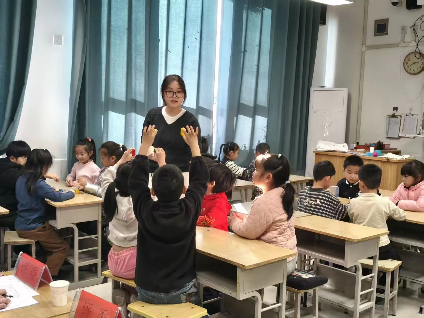 比赛过程中,语文、数学、综合三个会场同步推进,参赛师范生深耕教材、巧思设计,将生活素材与教学内容有机结合,通过动手操作、小组合作、闯关竞赛等多元化形式激活课堂,充分调动了学生的参与热情,展现出师范生良好的教师潜质与教学风采,呈现出一堂堂高质量的模拟课堂。