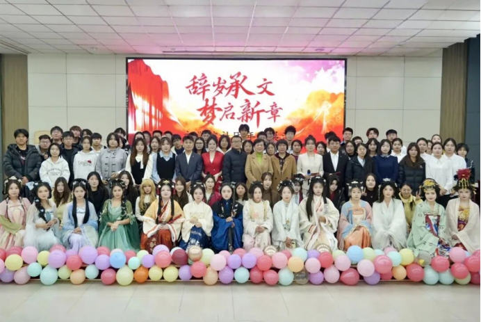 为丰富校园文化生活,厚植人文艺术底蕴,近日,文学院雷雨剧社、云水桃夭汉服社、中兴书法社、“知乐游”文学社于学术报告厅联合举办“辞岁承文,梦启新章”社团年度展演。文学院党总支书记金晓雪、副书记高雪莲到场观看。
