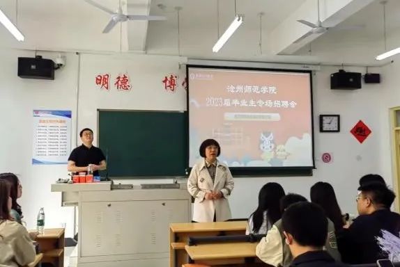 2.举办小型专场招聘会。先后邀请印尼八华学校、花开远方黄骅课程中心、秦汉胡同国学教育等8家单位进校,为学生针对性解析不同类型用人单位的企业文化、办学特色、人才需求、薪资待遇等情况。
